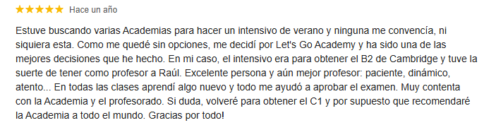 En los cursos intensivos de julio en Let’s Go Academy trabajarás las competencias clave de los exámenes oficiales, reforzando tu speaking, writing, listening, así como mejorarás tu gramática y vocabulario.